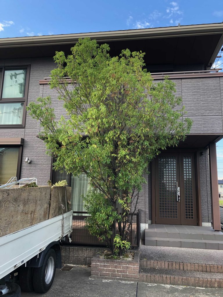 高さを1〜1.5mほど下げて全体を一回り小さくしました。中の不要な枝を抜いたことで風通しが良くなり、虫もつきにくくなりました。